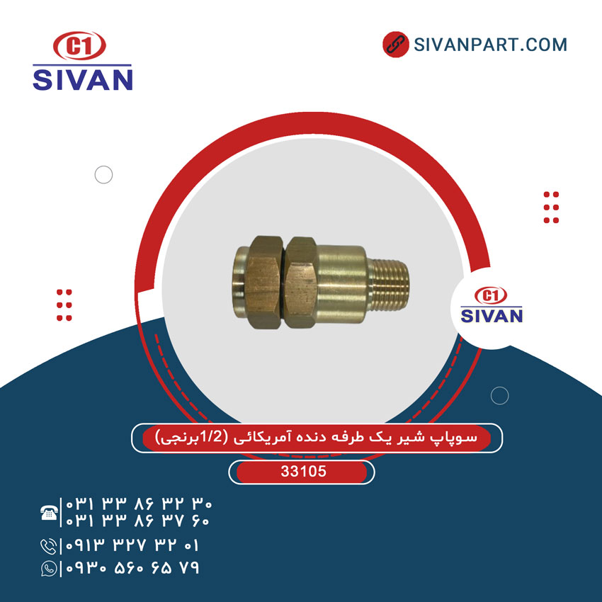 سوپاپ شیر یک طرفه دنده آمریکائی (1/2-برنجی)
